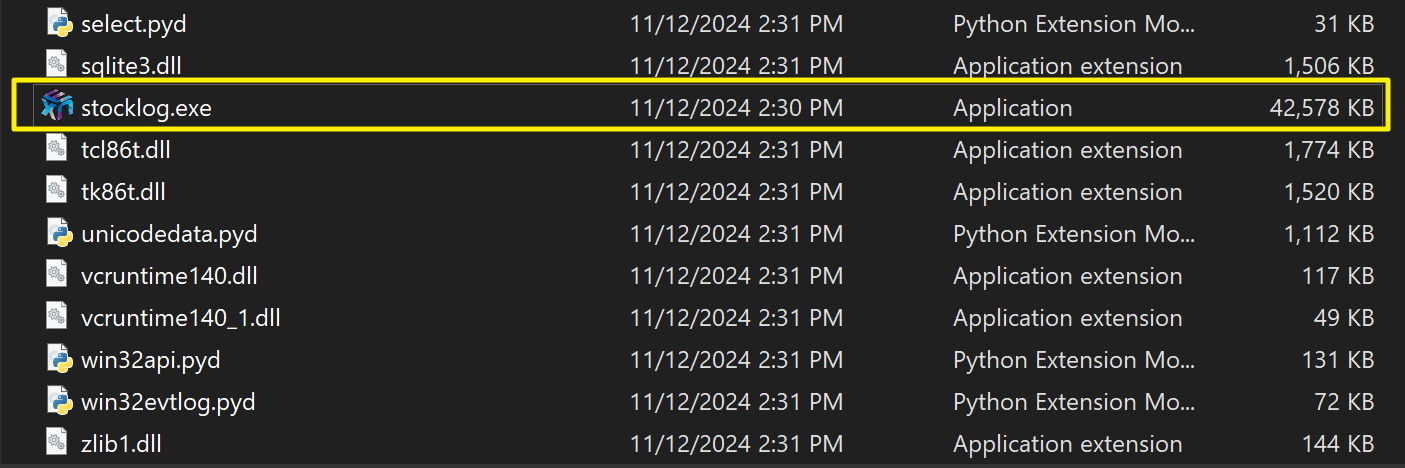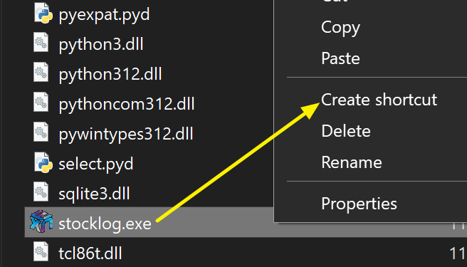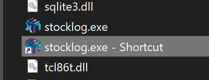 To create the shortcut, scroll down within the stocklog directory until you find stocklog.exe: