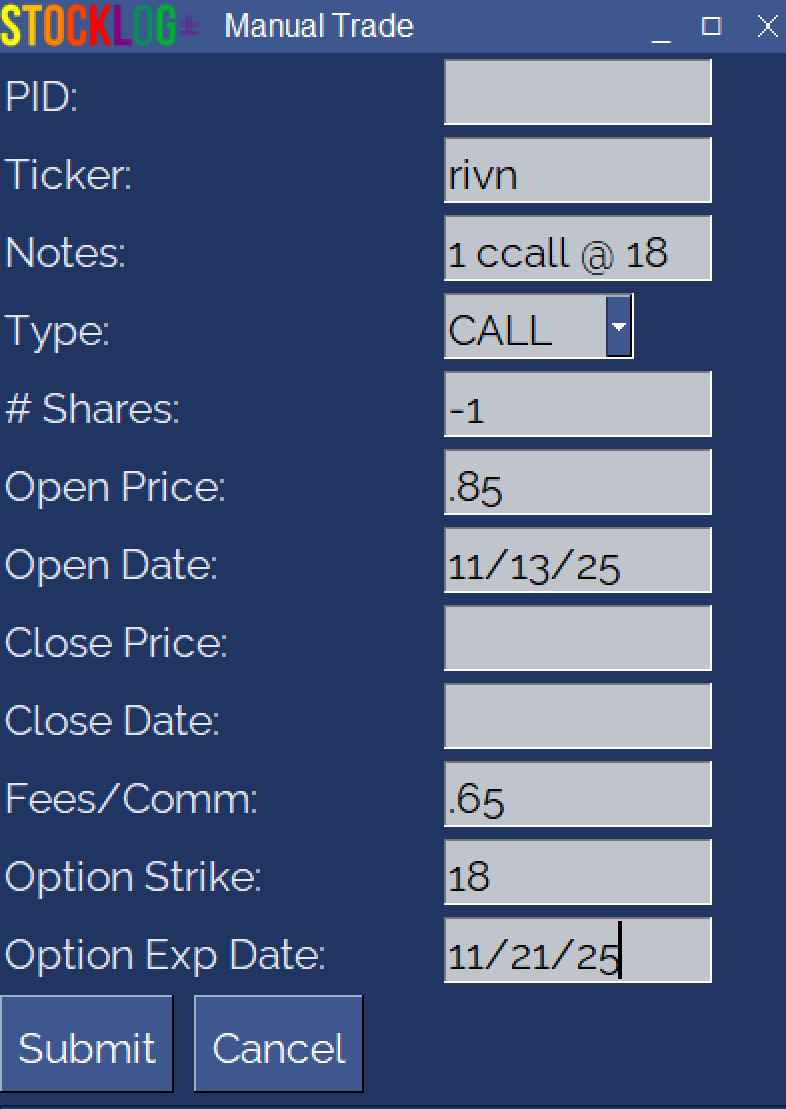 35: Option expires worthless, leave ClosePPS at 0, enter 11/27/25 as close date