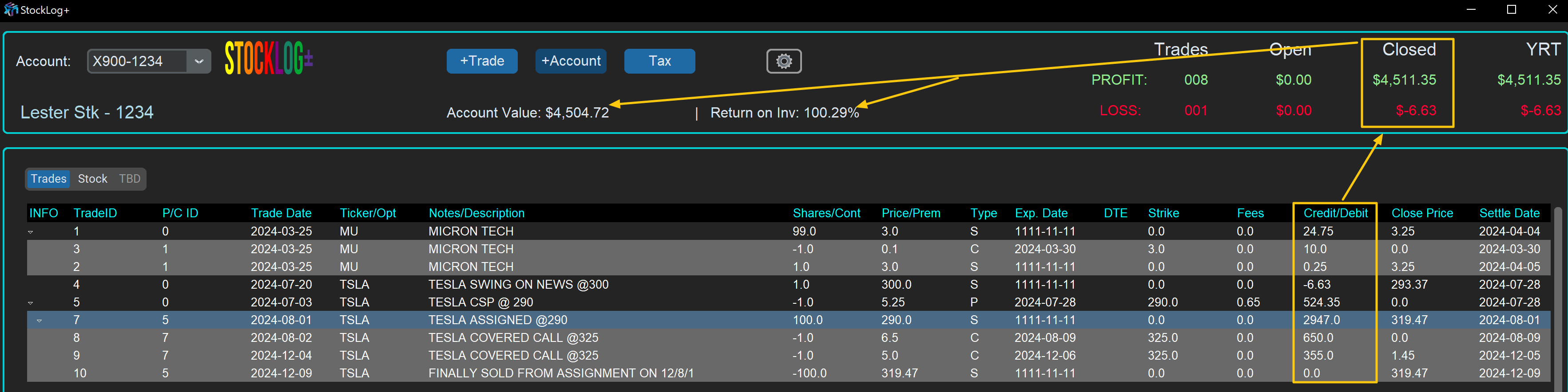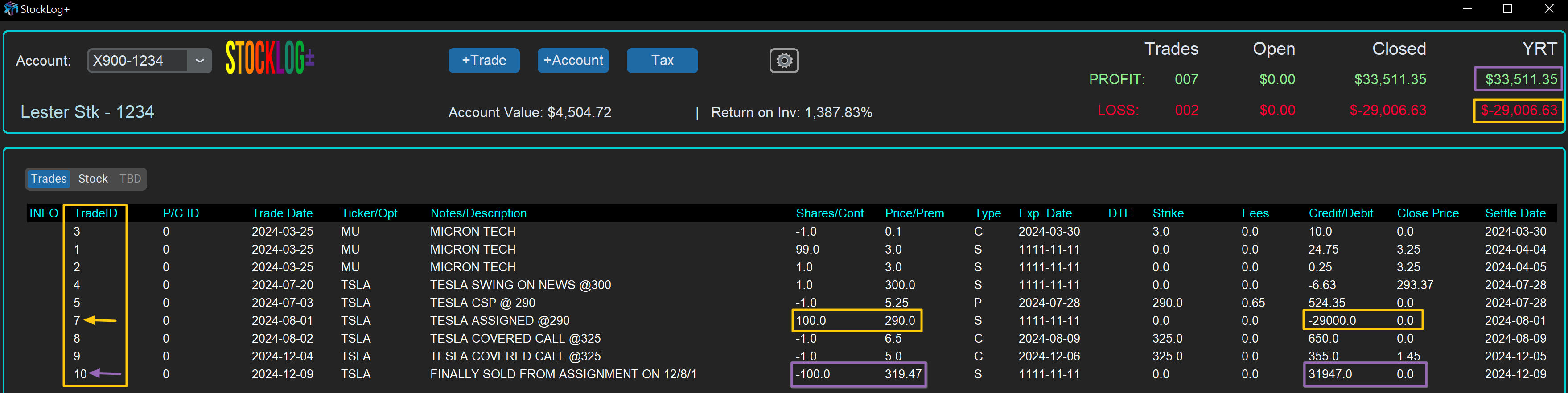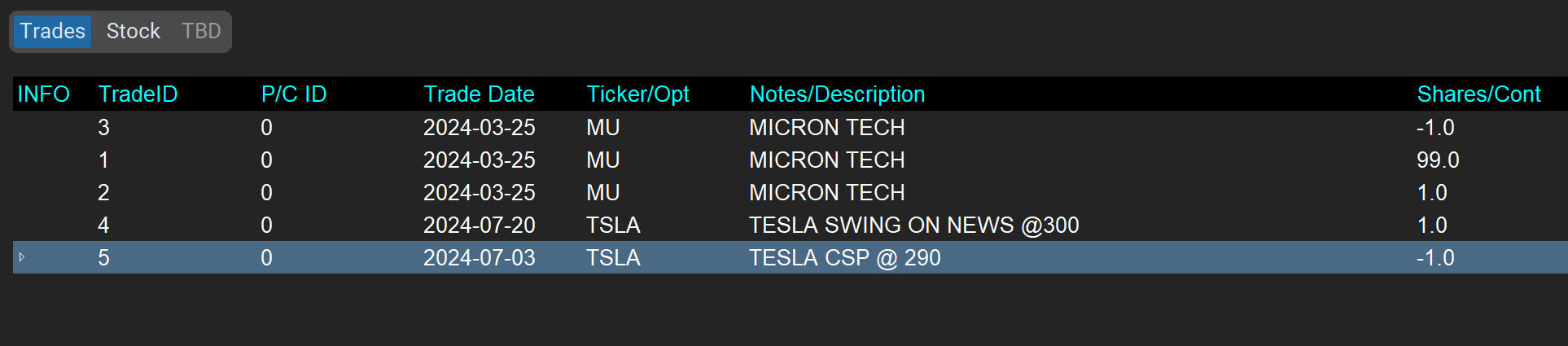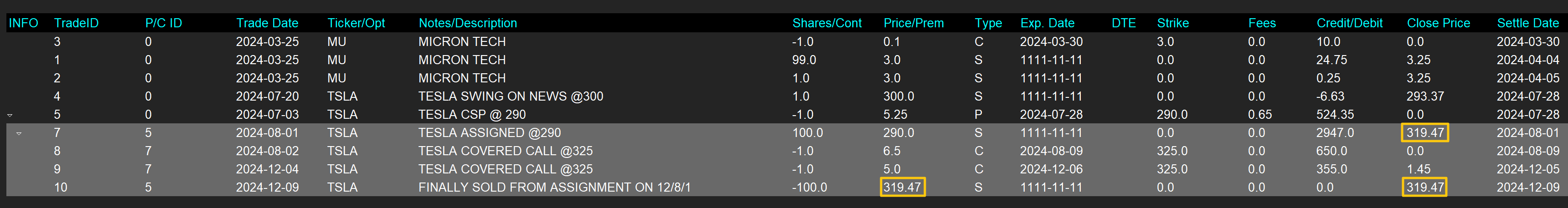 The panel is less noisy with all the TSLA trades that actually created one long trade over several months folded under TID#5, the start of this chain.