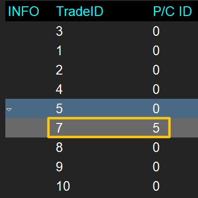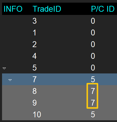 - P/C ID (PCID): Parent / Child ID used to group trades together. Only numbers from TID are valid