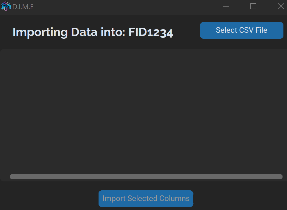 After importing, D.I.M.E. will present you with a preview of columns found and the first few rows.